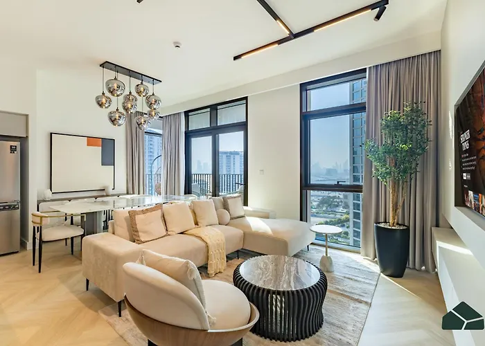 Die 103 m² große Ferienwohnung Luxurious 2Br With Sea And Burj View By Bms Dubai liegt in unmittelbarer Nähe von verschiedenen Sehenswürdigkeiten der Gegend: Rise Dubai Creek Harbour befindet sich unter anderem circa 5 Gehminuten von hier entfernt. Das Apartment verfügt über eine Terrasse und einen Swimmingpool, wo sich die Gäste gut entspannen können.